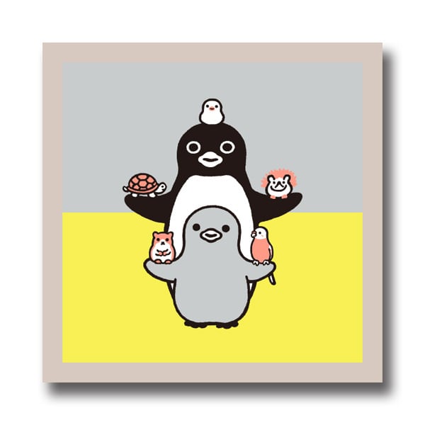 [額装シルクスクリーン]『ペンギンと手乗り〝手乗りフェス イエロー〟』シリアルナンバー・直筆サイン入り