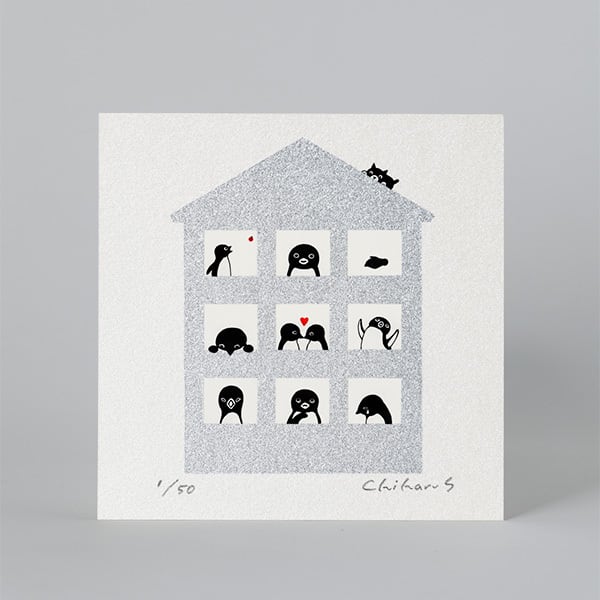 たくさんのリクエストを頂いていた、図録『ペンギンアパートメント』表紙イラストのシルクスクリーンが完成しました。