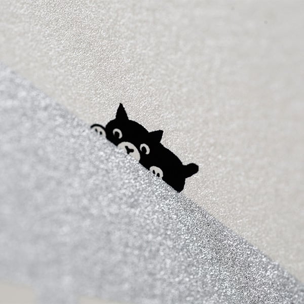 アパートメントには(シルク印刷でなければ再現できない)シルバーを、背景には[白の巻]=偏光ホワイトパール、[黒の巻]=スミクロを採用。まぶしい朝の光、深い夜の暗闇、まったく表情の異なるペンギンアパートメントをお届けします。