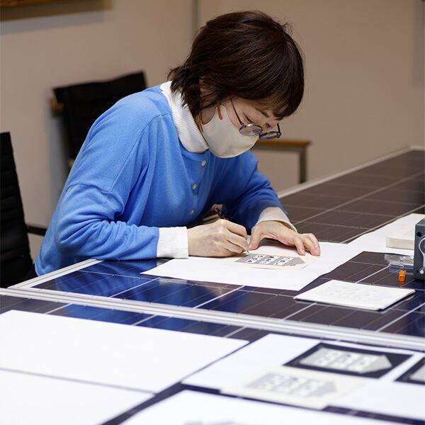 史枝さんによるシルク印刷は「ズレたり、カスレたりするのがかわいい」と一般的に称されるシルク印刷とは一線を画するもの。イラストは0.01ミリ単位で加工・修正され、版ズレなどはどこにもありません。