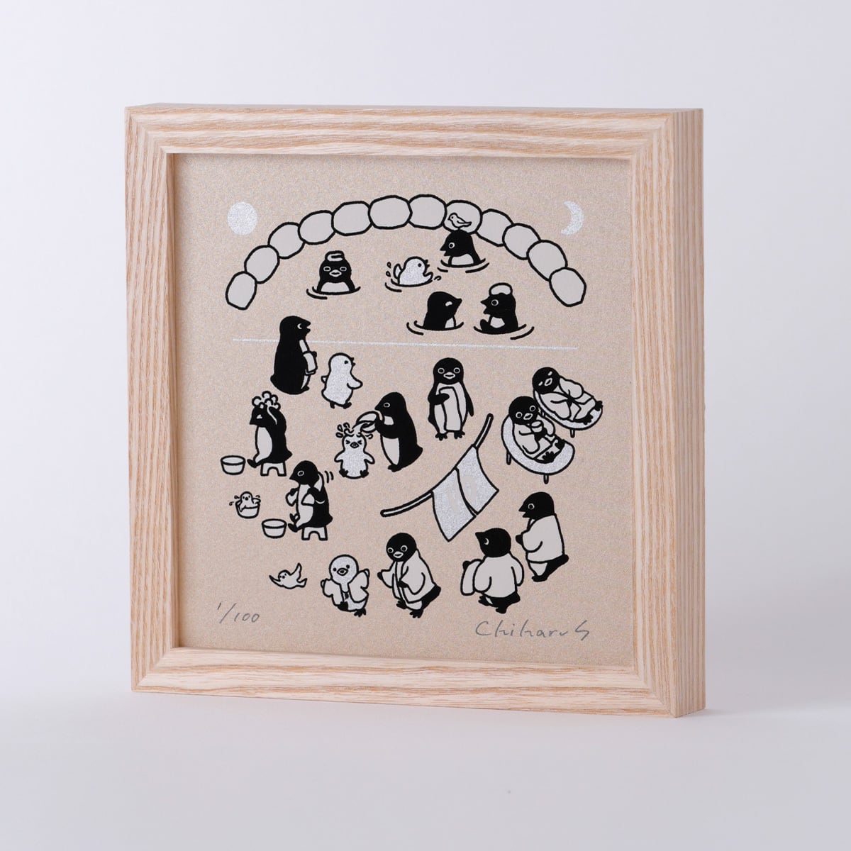 *テスト公開中*《シルクスクリーン》『ペンギンと白文鳥の温泉戯画』